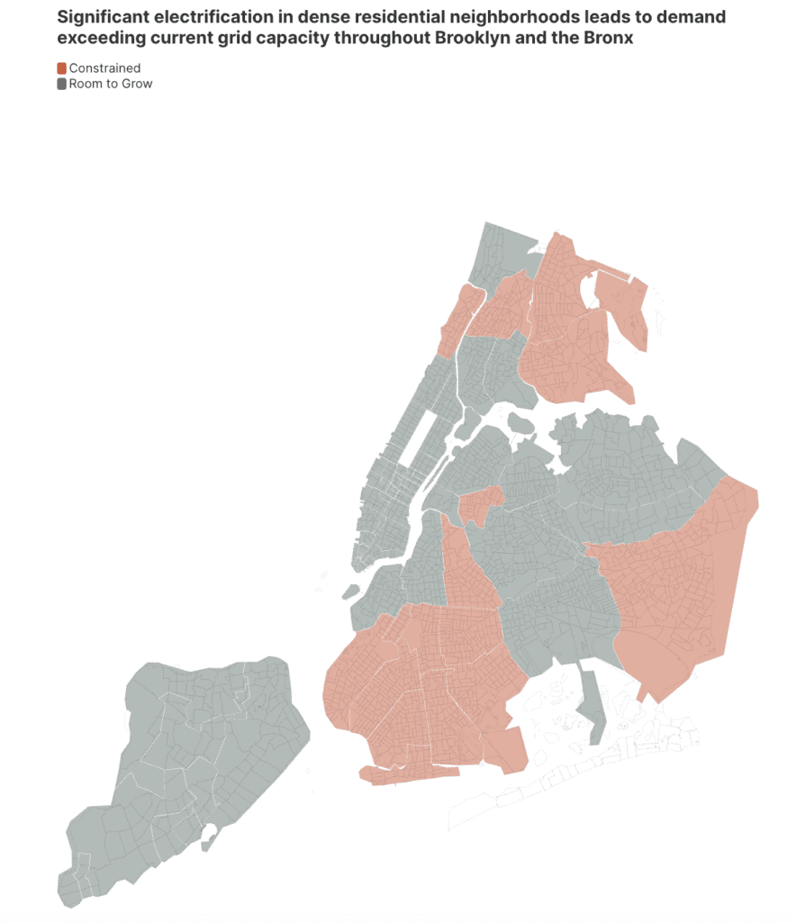 - The 15 NYC grid areas that may see the fastest electrification of heat and hot water systems and the earliest grid constraints are primarily Environmental Justice Areas.