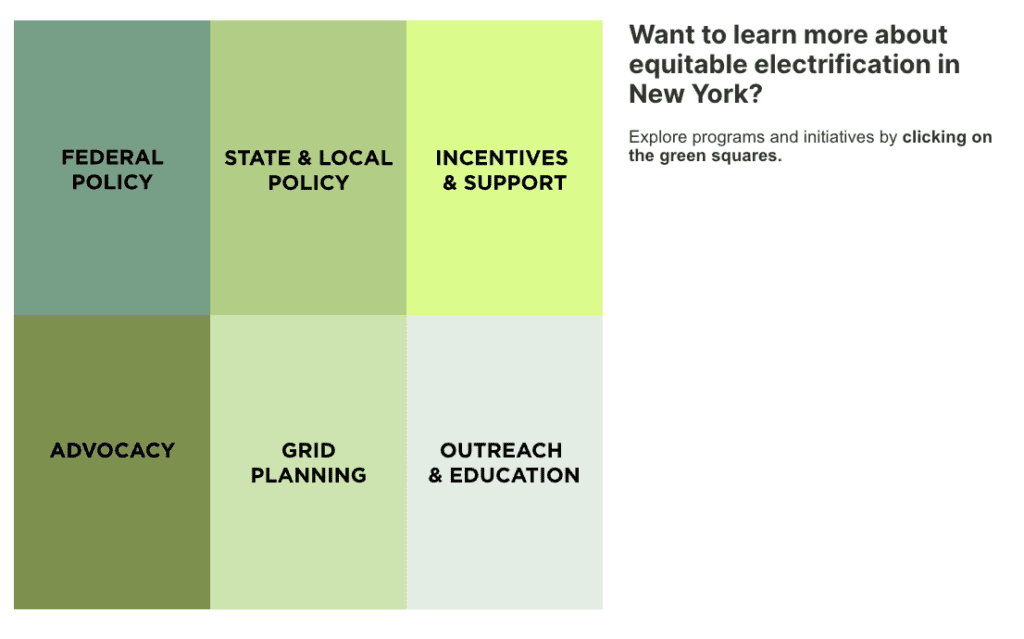 Click on each section below to learn more about electrification, efficiency and advocacy efforts across New York: